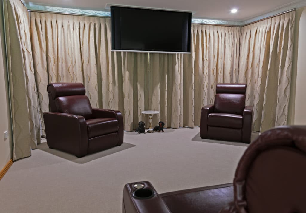 It’s one thing to enjoy viewing the TV and all the magic that comes with it, but what can not go understated is the need for quality seating. This room is perfectly tied together with Manhattan recliners. These custom made to order recliners don’t just look the part, they feel the part too. The headrests and leg rests are individually motorised allowing for smooth movement and the perfect sitting positions. Allowing for a variety of colour options in the seating range means there are many colour choices available to compliment any room. As you can see here, the home owner opted for a colour that is subtle yet still allows for the recliners to be a feature piece of the room.